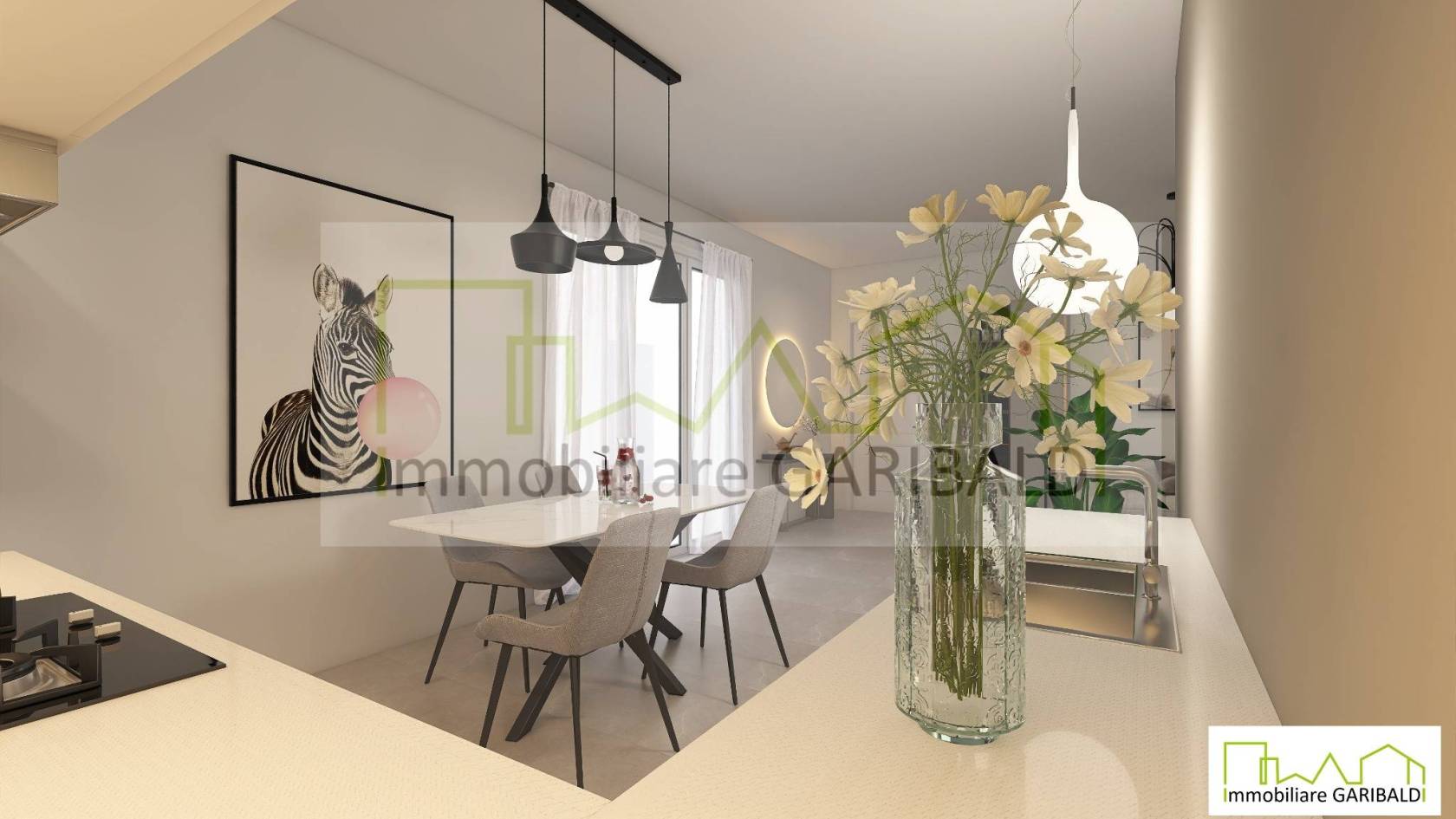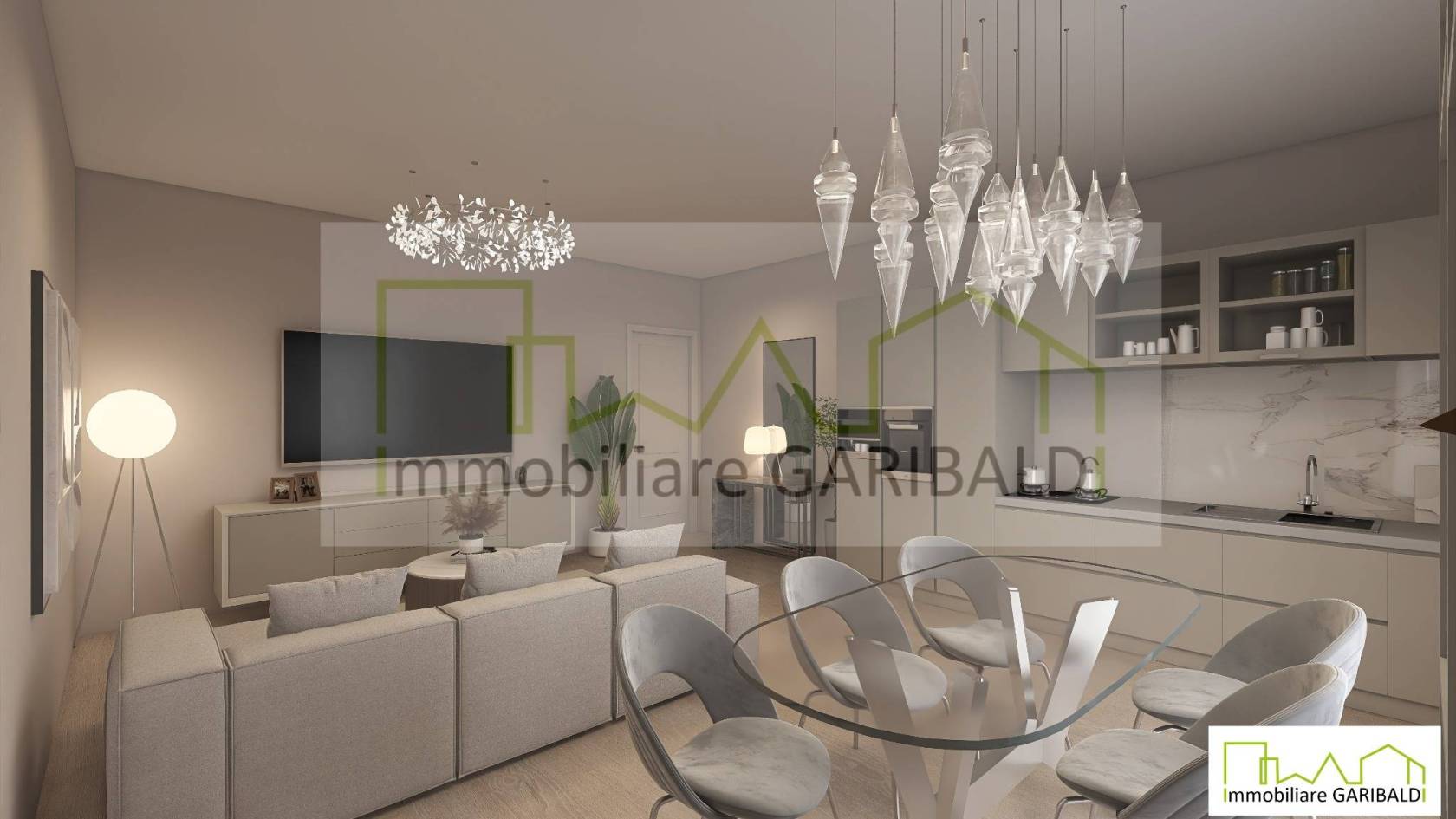 - quadrilocale con luminoso soggiorno con cucina e affaccio sulla terrazza privata coperta, disimpegno notte con due camere matrimoniali e una cameretta, al piano interrato box doppio con cantina Eu. 280.000,00 nei disegni id. n.7