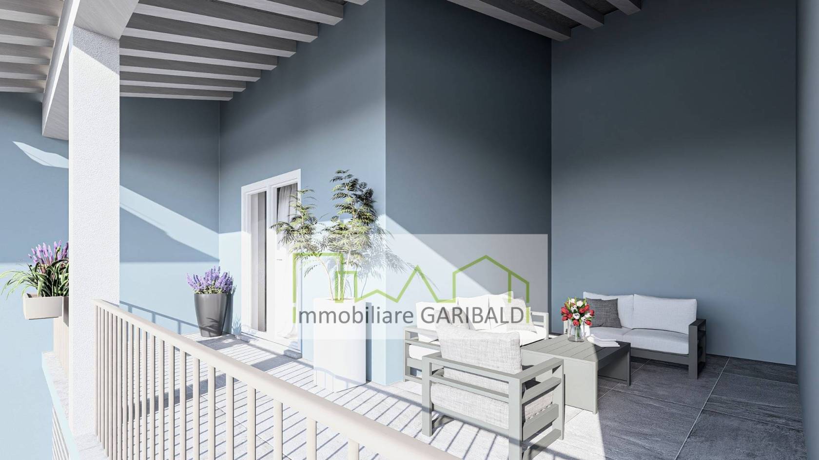 disponibile ultimo trilocale al piano primo con terrazza coperta con travi a vista, cucina a vista e luminosa zona giorno, disimpegno notte con camera matrimoniale, camera doppia e bagno, concludono la proprietà un' ampia cantina e box auto doppio.