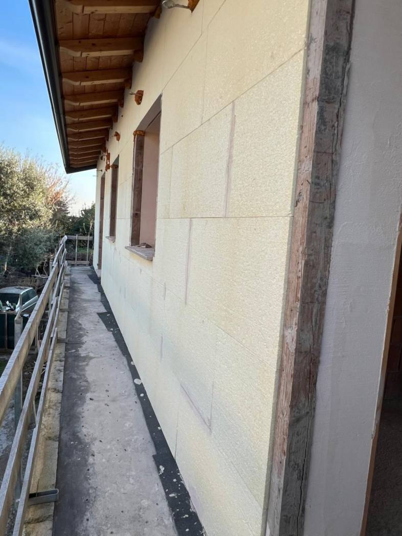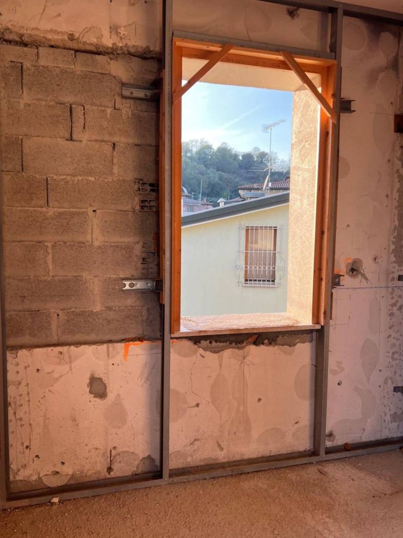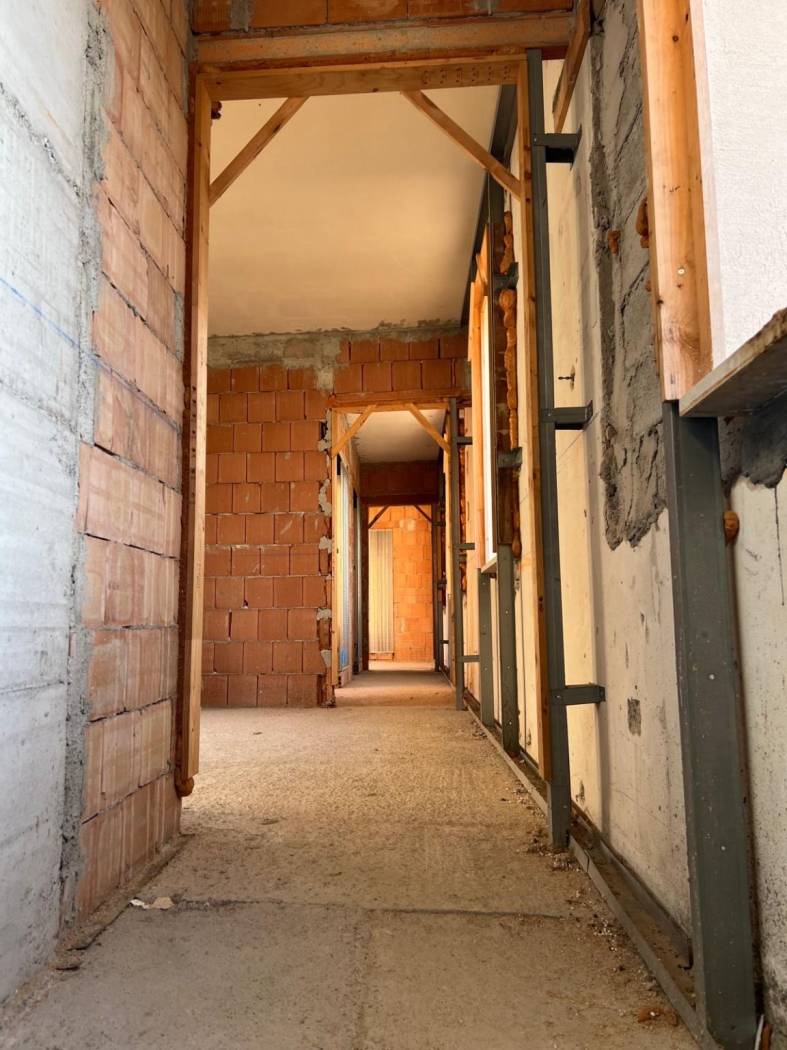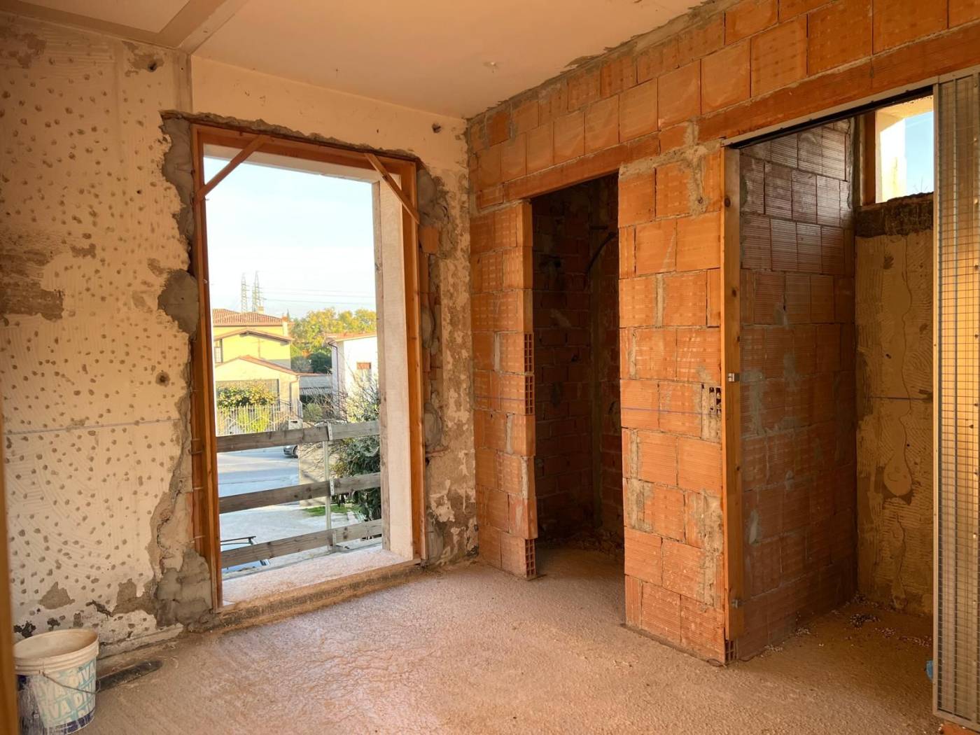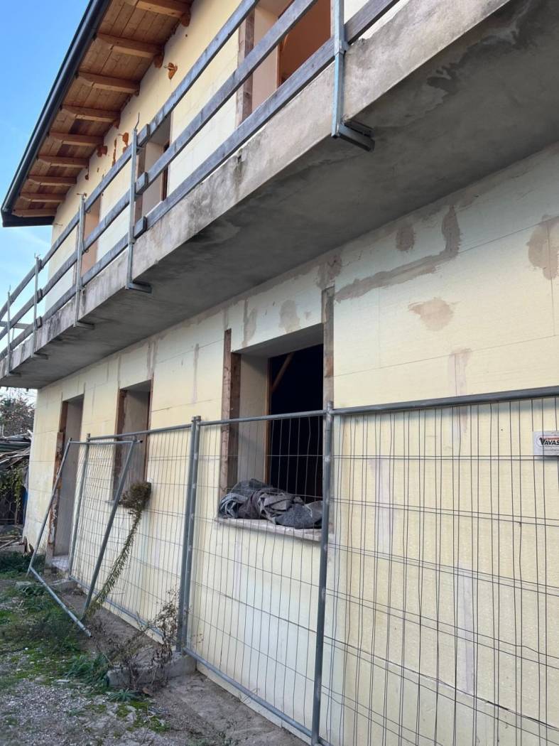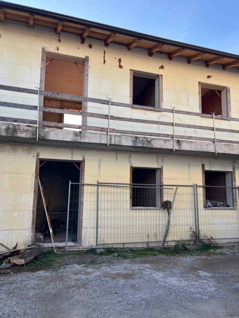 Proponiamo in vendita n. 2 appartamenti al rustico con progetto approvato, le unità immobiliare sono suddivise su due livelli, una al piano terra composta da soggiorno con cucina, disimpegno notte con cameretta, comodo bagno e camera matrimoniale con bagno privato e cabina armadio, inclusi nella proprietà abbiamo un giardino privato e due posti auto. Al piano primo troviamo la seconda unità composta da zona giorno con cucina a vista, disimpegno notte con cameretta, bagno ampio e camera matrimoniale con bagno privato e cabina armadio, concludono la proprietà un locale tecnico posto all' esterno sul lungo balcone che attraversa tutta l' unità immobiliare e un box auto singolo. L'immobile si trova al rustico con lavori da ultimare e predisposto per impianto completamente elettrico con approvazione per impianto fotovoltaico di 20 kw con solare termico.